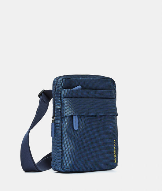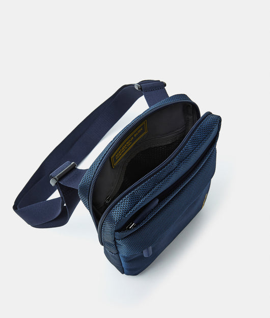 Borsello medio con tracolla e doppie tasche frontali con zip, in tessuto. Tasche smart frontali e interne, dettagli personalizzati e tracolla regolabile in jacquard.