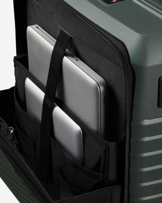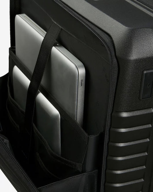 Material: Esterno: Il tessuto della tasca morbida esterna, l'elastico esterno e le zip esterne sono realizzati rispettivamente con il 100%, il 66% e il 94,8% di PET riciclato post-consumo, parte del Recyclex™ Material Technology Initiative di Samsonite. Il rivestimento e il supporto sono realizzati con materiali vergini. Interno: La fodera interna, le fettucce interne e le cerniere interne sono realizzate al 100% con PET riciclato post-consumo, parte del Recyclex™ Material Technology Initiative. Il rivestimento e il supporto sono realizzati con materiali vergini.