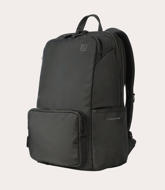 Zaino dal design contemporaneo per laptop 15.6" e MacBook Pro 16". Realizzato in materiale tecnico ad alta densità, lo zaino Terras è dotato di un'ottima organizzazione delle tasche: due interne, imbottite e protettive, per laptop e tablet; due frontali, molto comode e con altezze differenti; due laterali, infine, per ombrello e borraccia. Il vano principale interno, essendo molto comodo, offre uno spazio adeguato ai documenti e agli accessori. Il lato posteriore, presenta uno schienale ergonomico, due spallacci imbottiti e regolabili, una fascia per il trolley e una tasca di sicurezza. I nastri sono abbelliti da una stampa all over tono su tono.