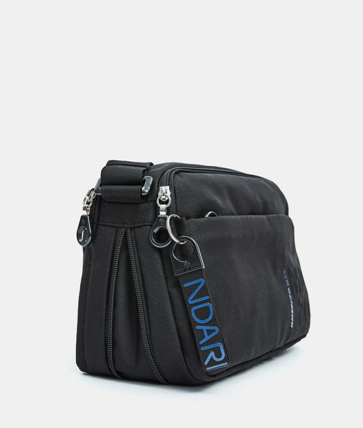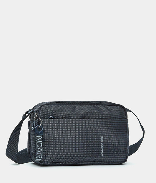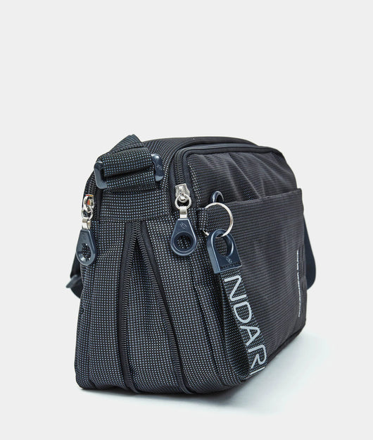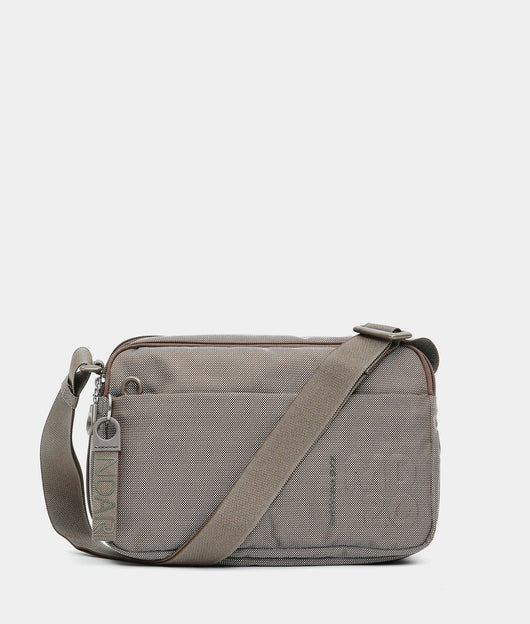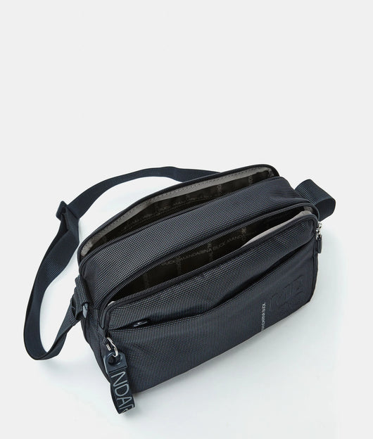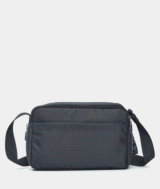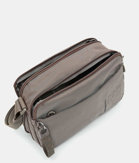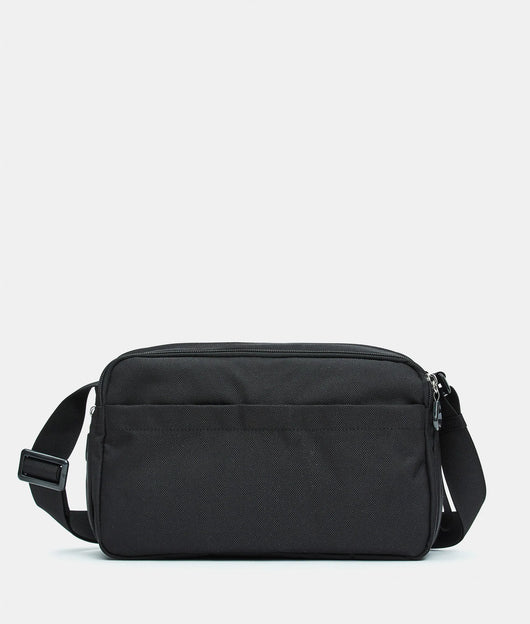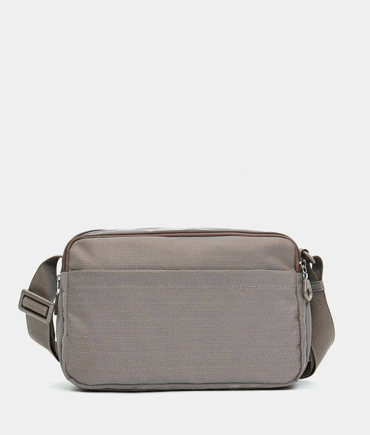 Borsa a tracolla media espandibile con cerniera inferiore e tasca frontale in tessuto. Doppia portabilità, tasche smart, dettagli personalizzati e tracolla regolabile in jacquard.