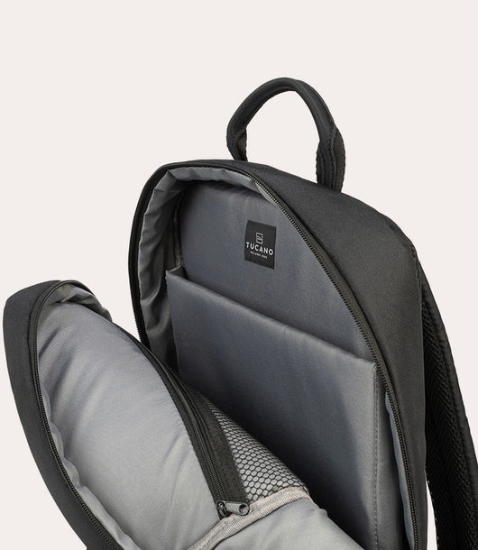 Zaino leggero in tessuto ottenuto dalla plastica riciclata dal design compatto e moderno, per MacBook e laptop fino a 15.6". Gli spallacci imbottiti e regolabili, lo schienale ergonomico e la tasca frontale esterna piatta ed organizzata, lo rendono comodo ed utile sia per il lavoro sia per il tempo libero.